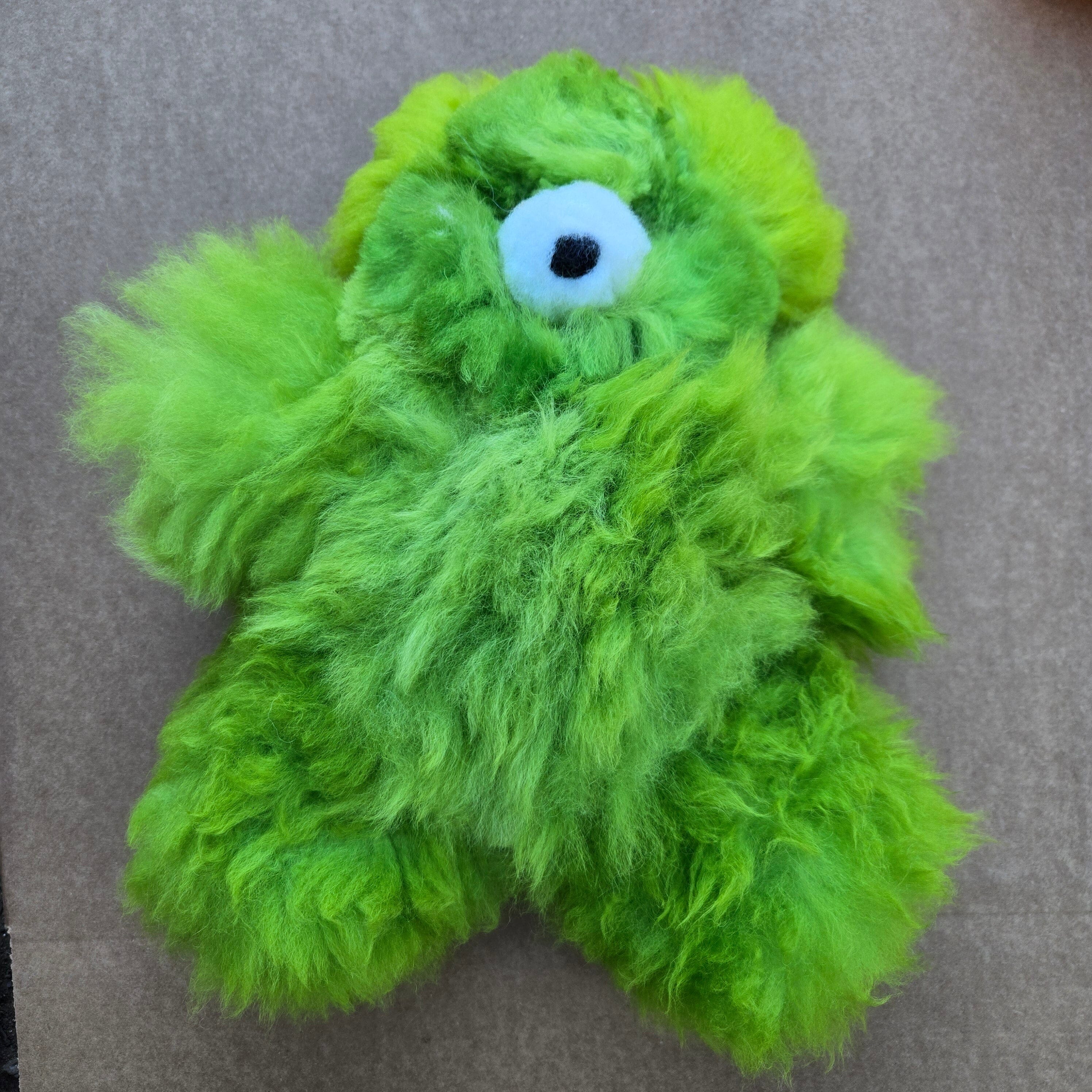 Made from the softest and finest alpaca pelts in natural colors. Enjoy the warm fluffy feel of alpaca in this lovable toy. No animals were harmed to make this stuffed animal.